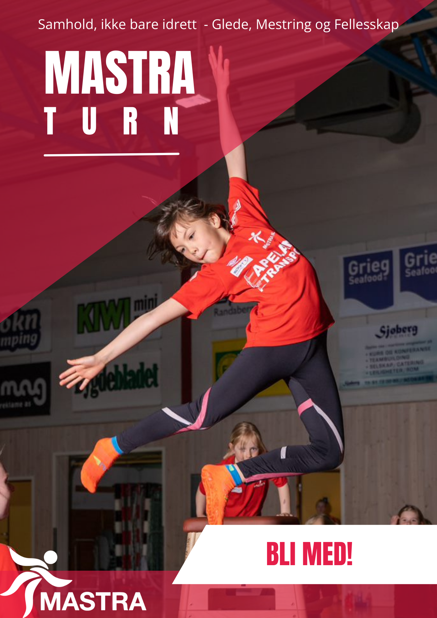 Mastra Turn arrangerer Gratis Drop-In 16/10/2024 - Mastra IdrettslagMastra Turn arrangerer Gratis Drop-InLes merSøndag 27 oktober kl 12:00-16:00 arrangerer vi åpen dag for alle barn født mellom 2011 og 2019 som ønsker å prøve seg på turn.